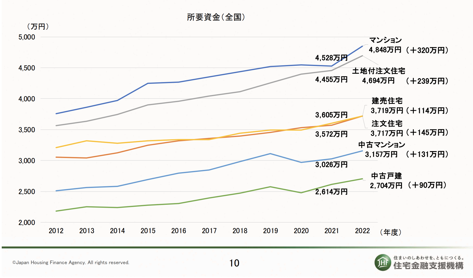 2022年は「土地+注文住宅」で4,694万円、「注文住宅(建物のみ)」で3,717万円です。