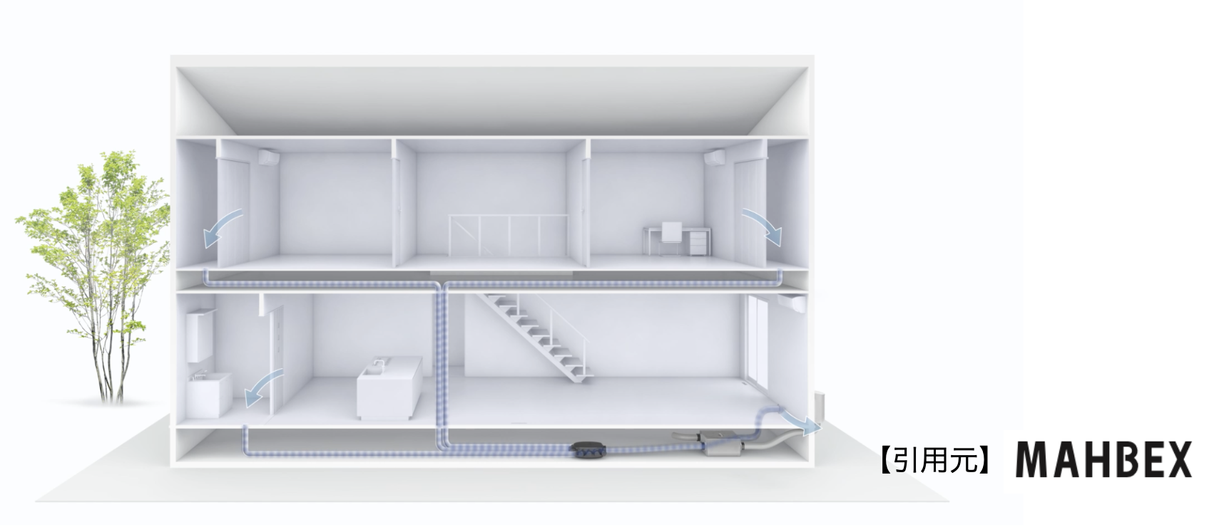 家にダクトを張り巡らせて、空気を給排気する仕組みです。