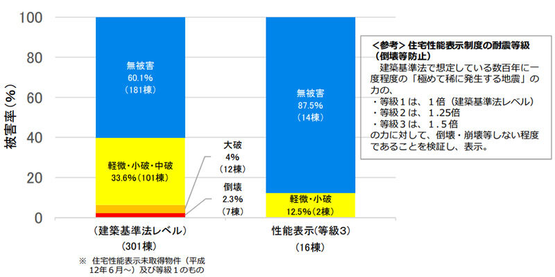 熊本地震(震度7を2回記録)では耐震等級3が活躍した