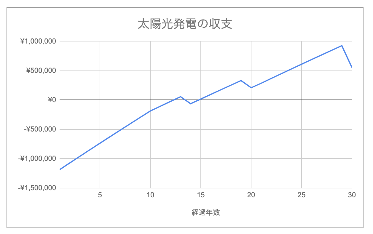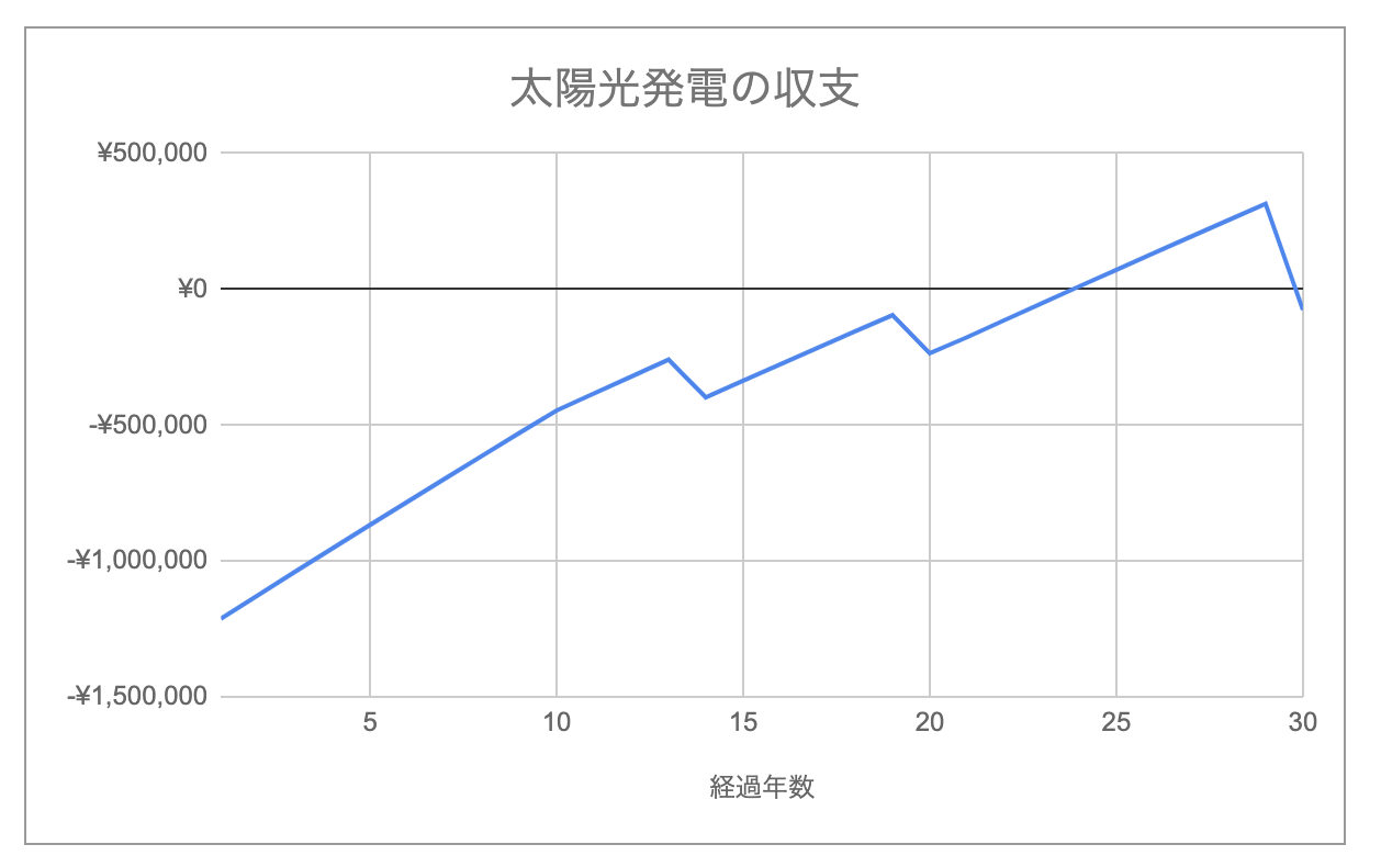 • パワーコンディショナー交換費用 20万円(30年間で1回のみ)