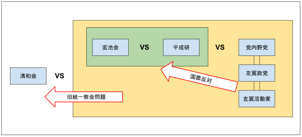 自民党内の派閥闘争、左翼も加えて、しょーもない図式