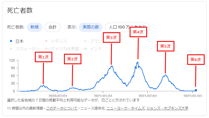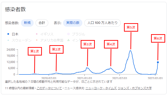 第1波から第6波までの経緯を俯瞰的に見てみましょう。