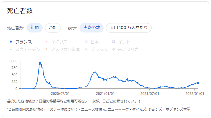 各国によって微妙な違いはありますが、死亡者数の減少トレンドが見て取れる国が多い印象です。