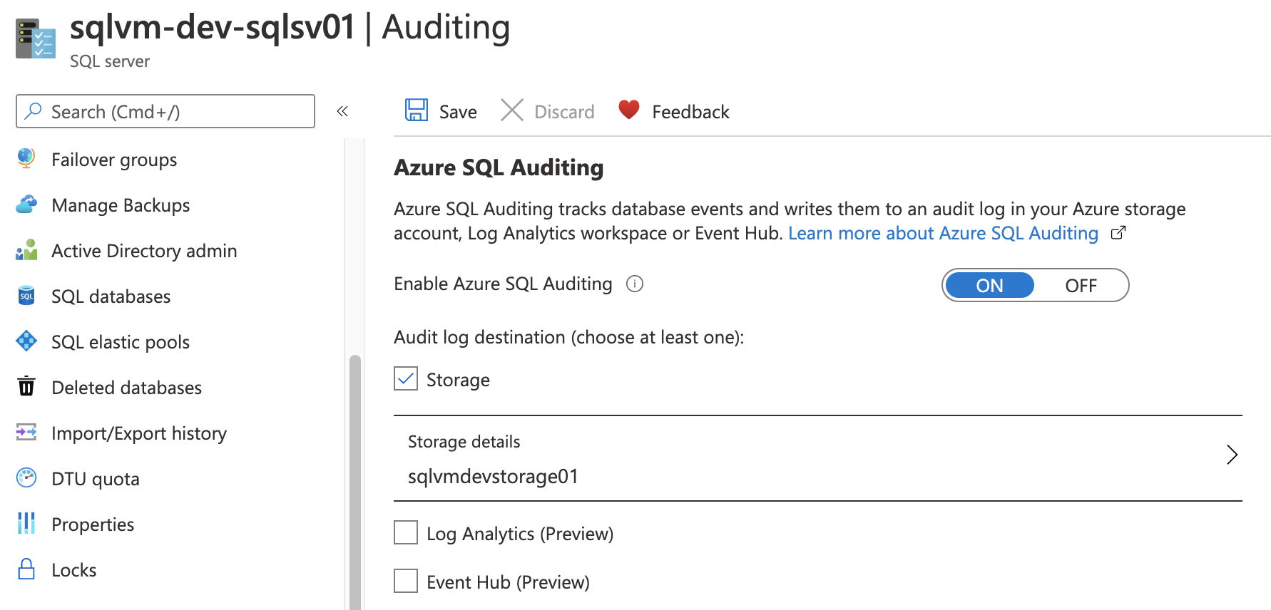 "type": "Microsoft.Sql/servers/auditingSettings",