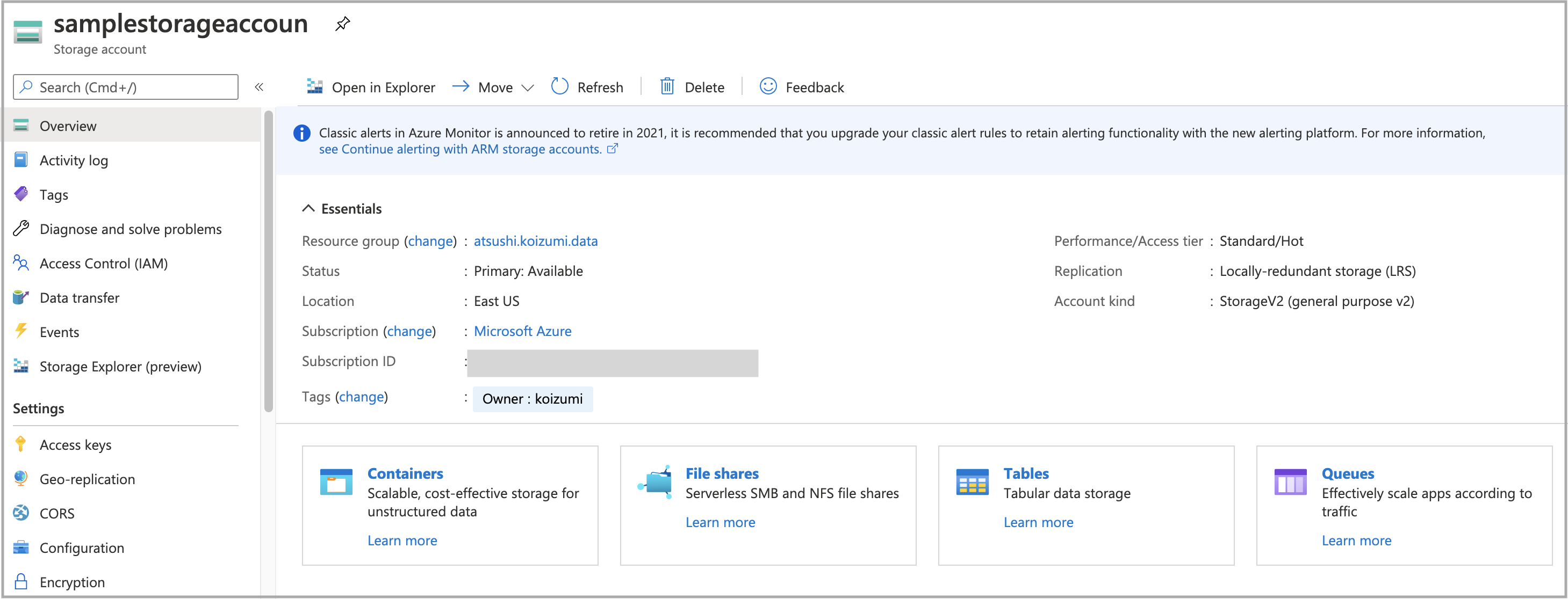 ですので、上記のストレージアカウントとはカテゴリーが違います。