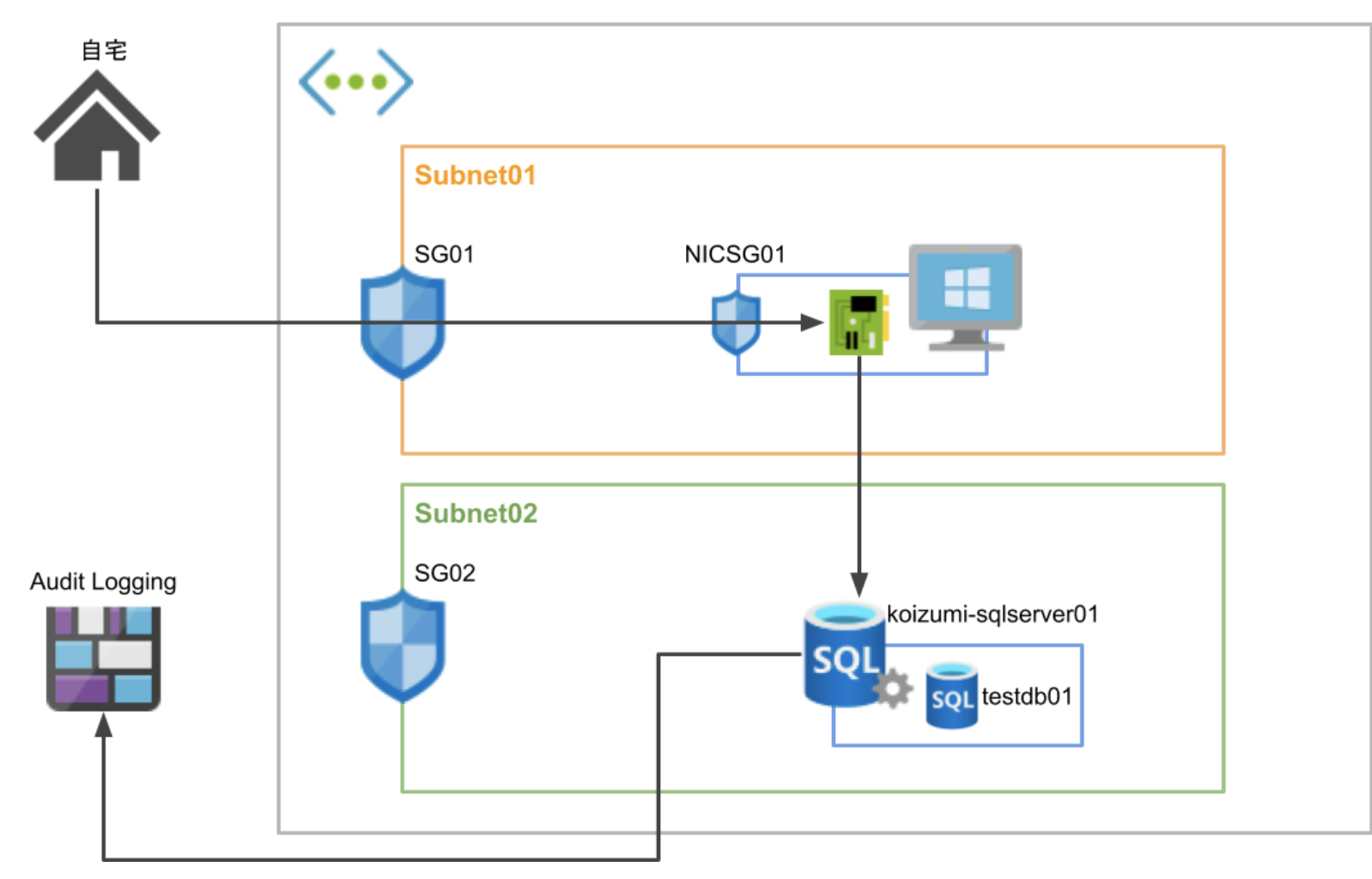 - SQL Database は Virtual Machine からのみアクセスを許可する。