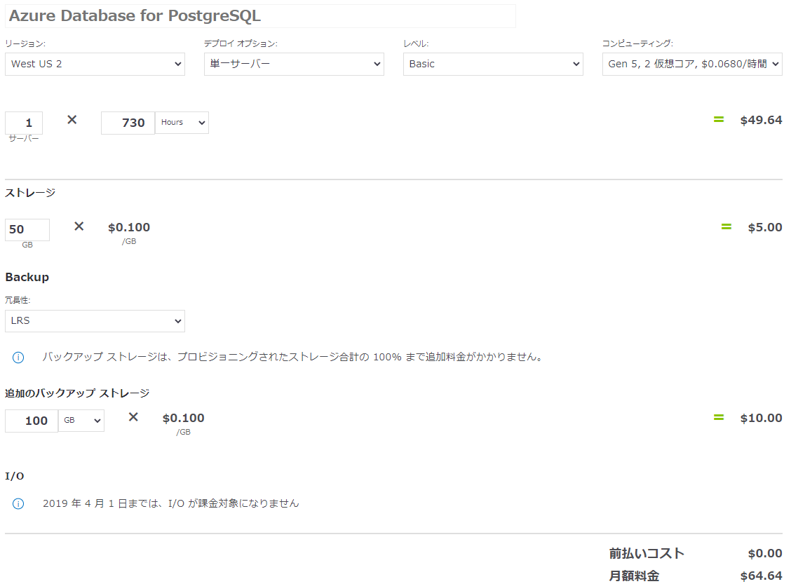 AWS なら RDS PostgreSQL を止めておくことが出来ます。Azure では止めることが出来ず、今のところ、勉強用で作成したデータベースは消すしかないようです。