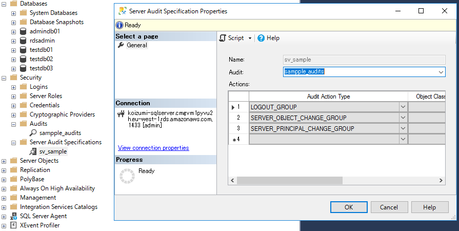 SQLServer の監査機能を理解するためには、アクショングループの概念を理解する必要があります。